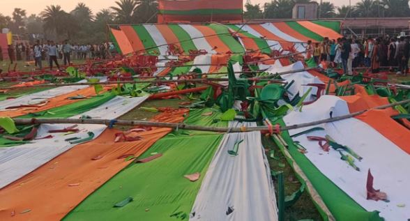 इस बीच मंच पर मौजूद भाजपा प्रत्याशी विनोद नारायण झा के चले जाने से भीड़ और भड़क उठी। गुस्साई भीड़ ने नारेबाजी शुरू कर दी और पंडाल को क्षतिग्रस्त कर दिया। मौके पर अफरातफरी मच गई, लेकिन पुलिस ने तुरंत पहुंचकर हालात पर काबू पाया। आयोजकों ने बताया कि पवन सिंह का कार्यक्रम तकनीकी कारणों और अंतिम समय में हुए बदलावों की वजह से रद्द करना पड़ा। उन्होंने कहा कि स्थिति अब नियंत्रण में है और नुकसान का आकलन किया जा रहा है।