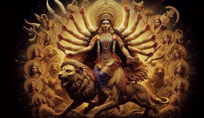 मां दुर्गा की प्रतिमा स्थापित करें।