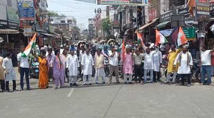 कांग्रेस पार्टी का सड़क पर विरोध प्रदर्शन