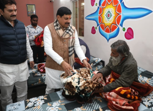 मुख्यमंत्री डॉ. मोहन यादव ने सोमवार रात इंदौर के दयालबाग स्थित आश्रय स्थल का देर रात औचक निरीक्षण किया। उन्होंने वहां अस्थायी रूप रह रहे लोगों से बातचीत की और आश्रय स्थल पर उपलब्ध सुविधाओं एवं व्यवस्थाओं की विस्तृत जानकारी ली। निरीक्षण के दौरान मुख्यमंत्री ने सभी आश्रयग्राहियों को कंबल वितरित किए, जिससे ठंड के मौसम में उन्हें राहत मिल सके।